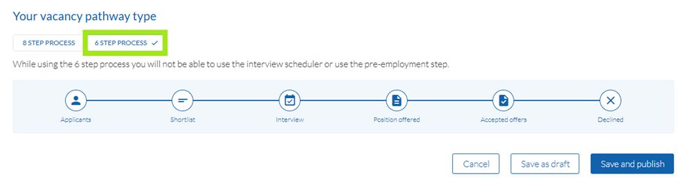 - 6-step pathway: Fast track recruitment with the condensed version (excluding Longlists and Pre-employment checks).